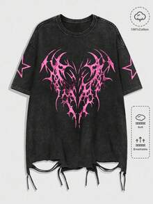 Grunge Punk Men's Summer Fashion Tie-Dye Contrast Color Print Distressed T-Shirt