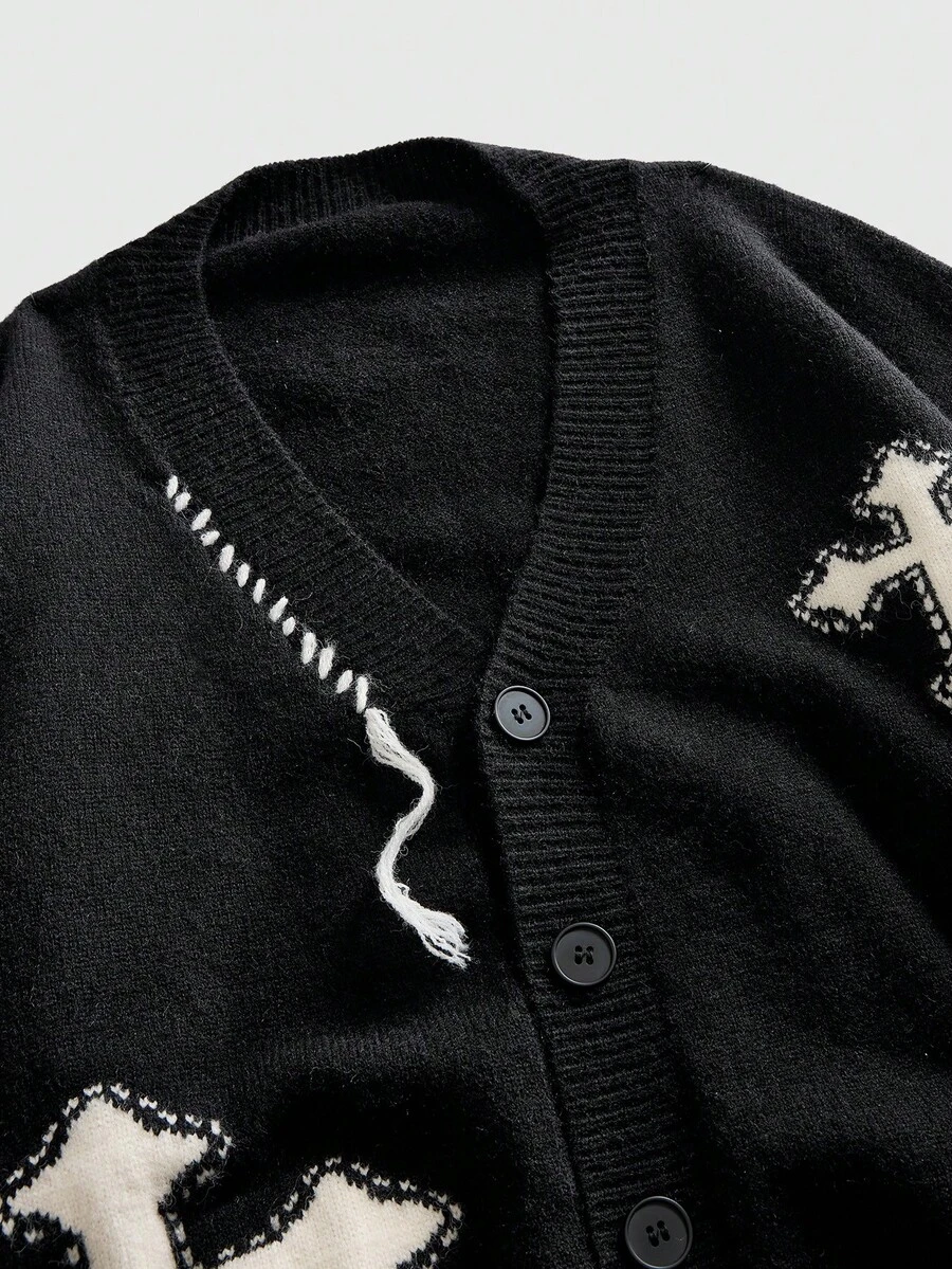Goth Men's V-Neck Front Opening Long Sleeve Cross Knitted Casual Versatile Retro Cross Sweater