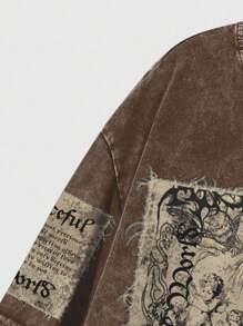 Grunge Punk Men's Vintage Angel Print Distressed T-Shirt, Summer, 2000s Style