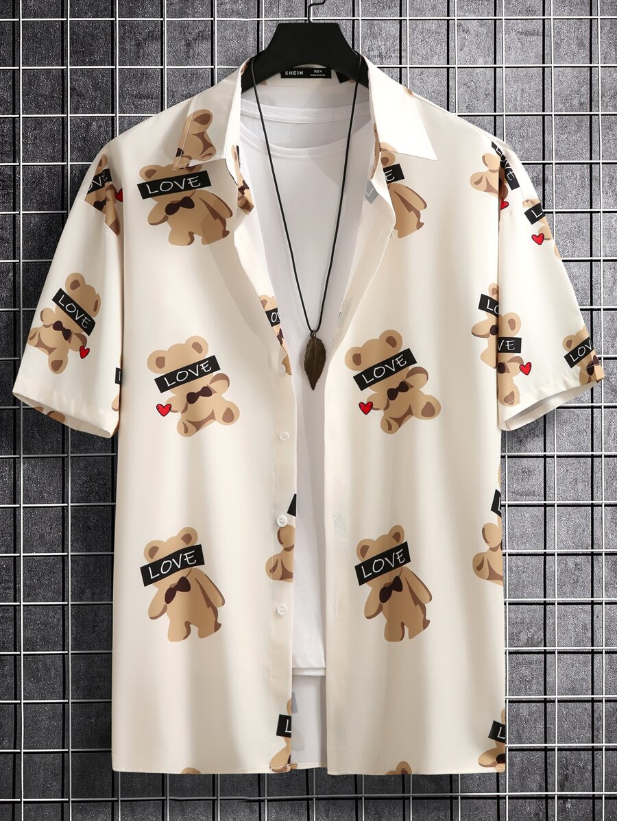 Guys Bear & Letter Graphic Shirt Without Tee