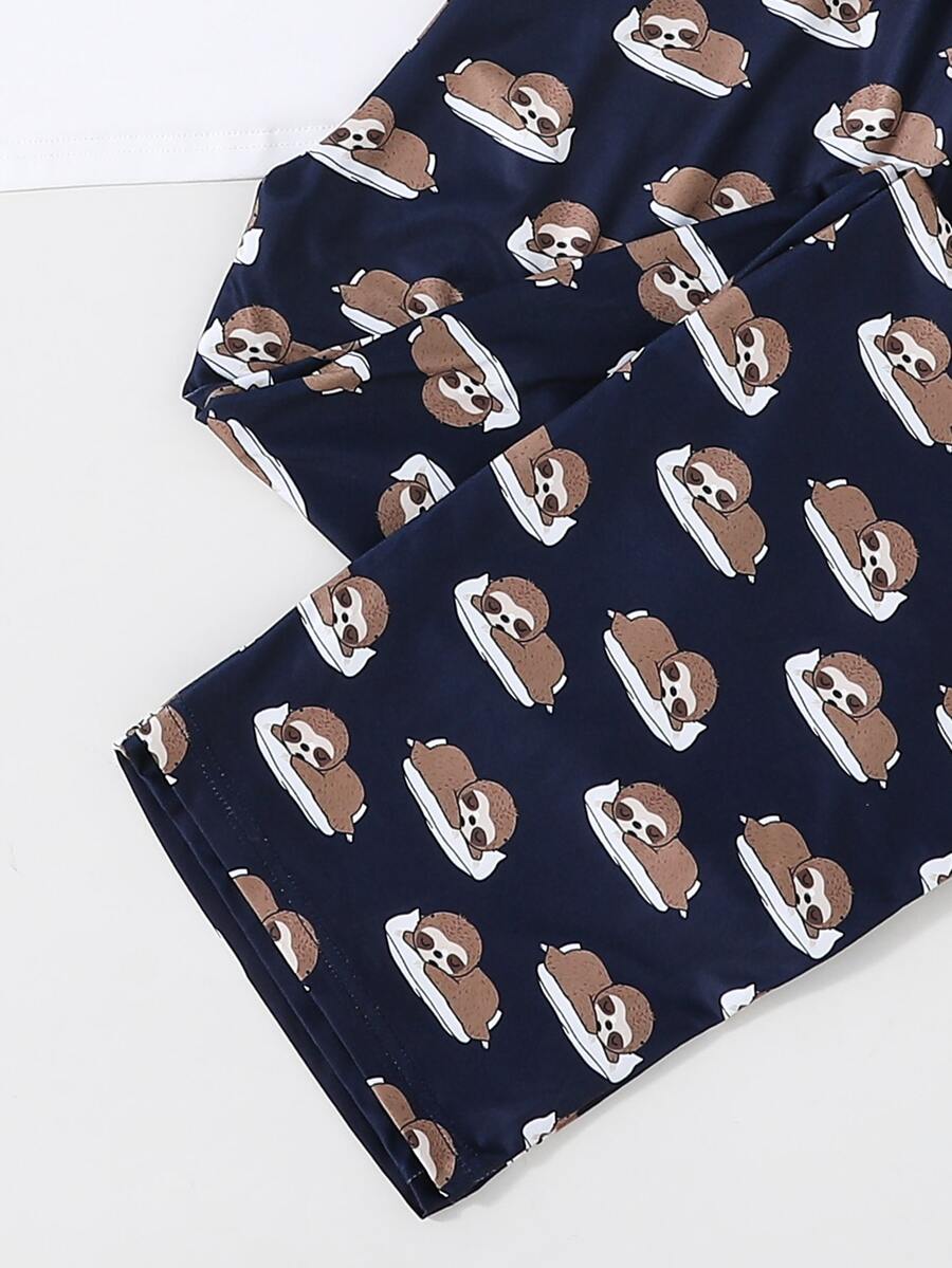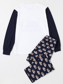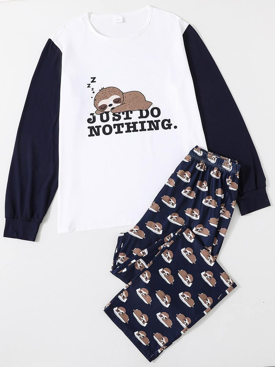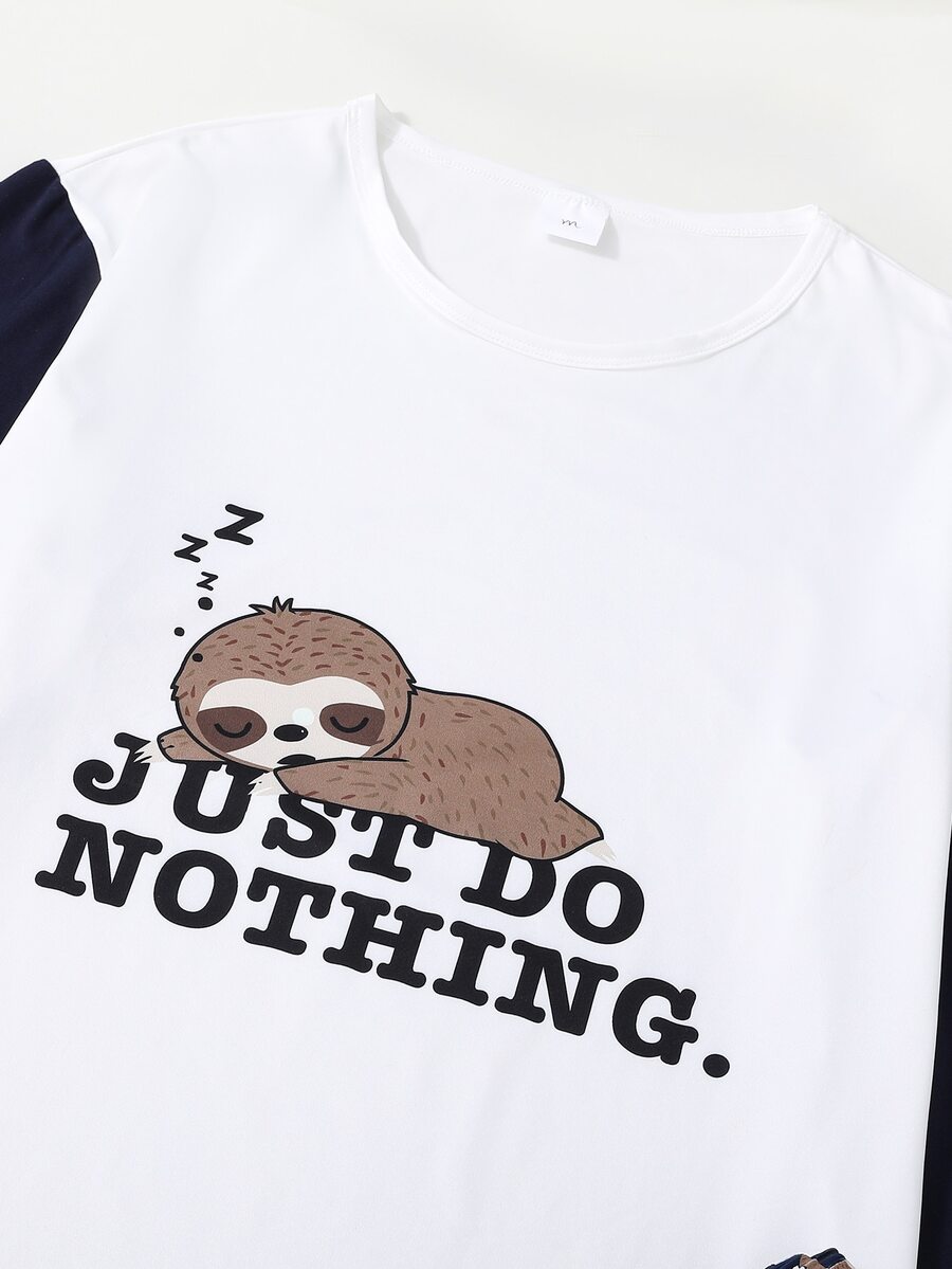 Guys Cartoon & Slogan Graphic Sleep Top & Sleep Pants