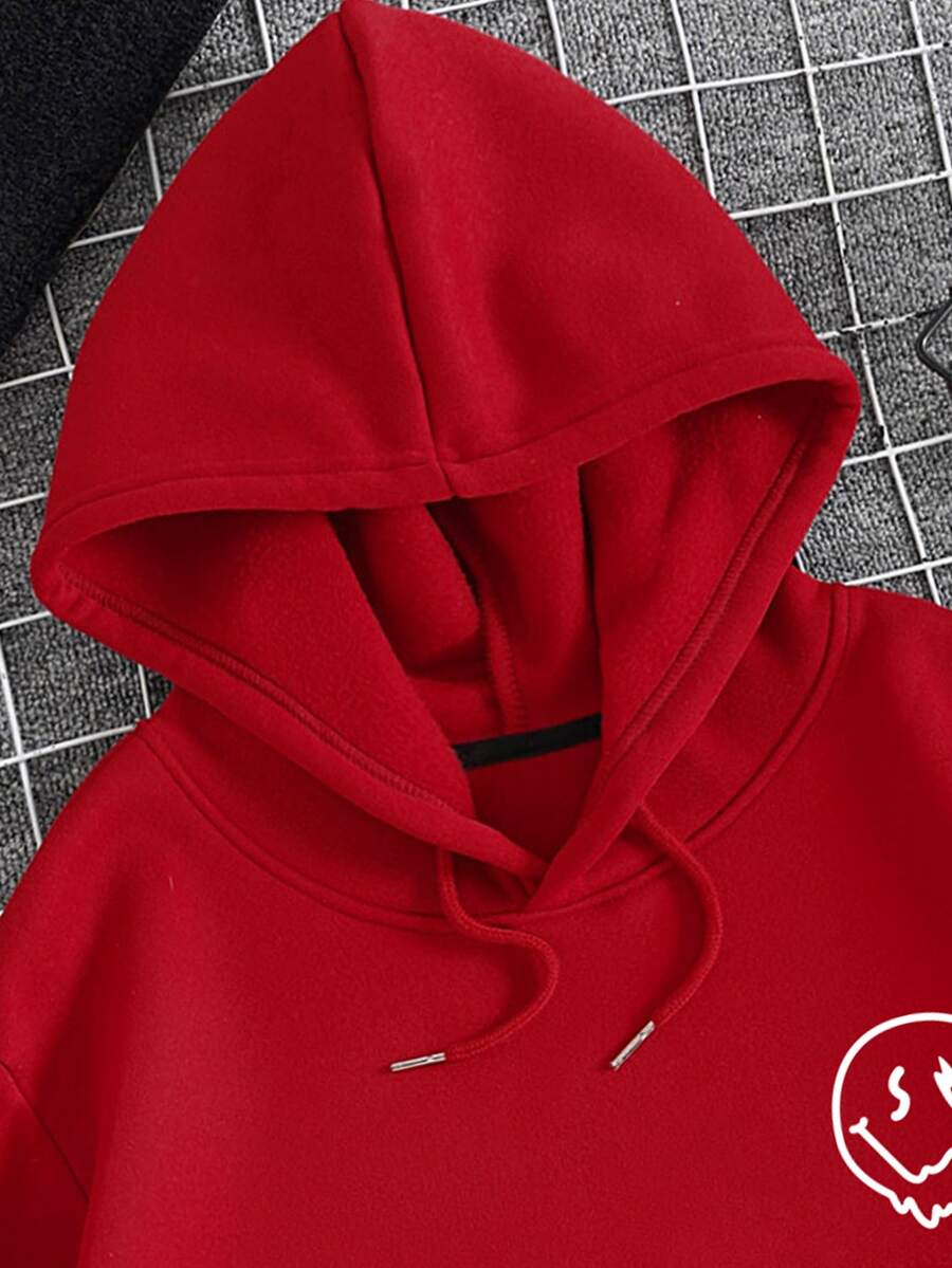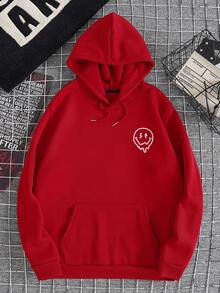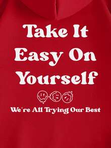 Guys Cartoon And Slogan Graphic Thermal Lined Kangaroo Pocket Drawstring Hoodie