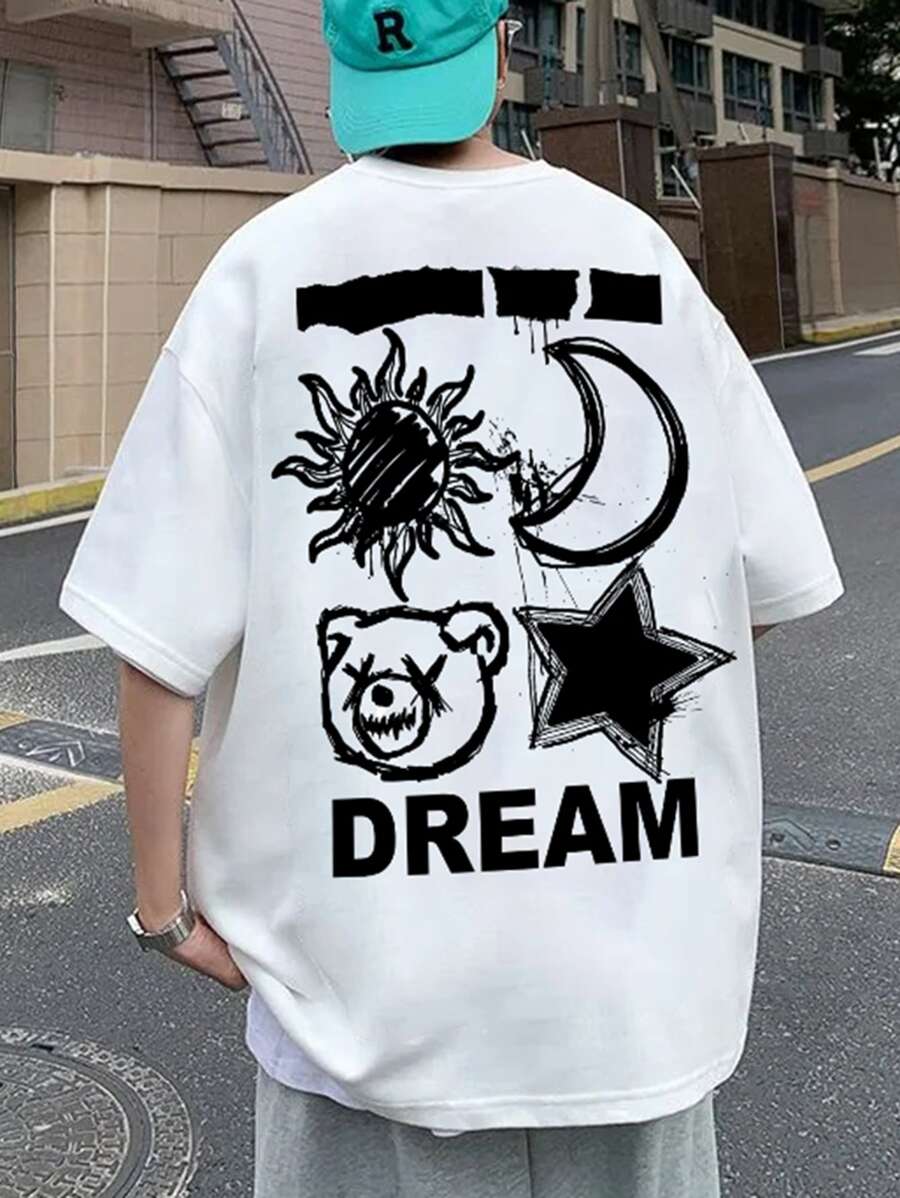 Men Cartoon & Letter Graphic Tee