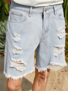 Guys Ripped Raw Hem Denim Shorts