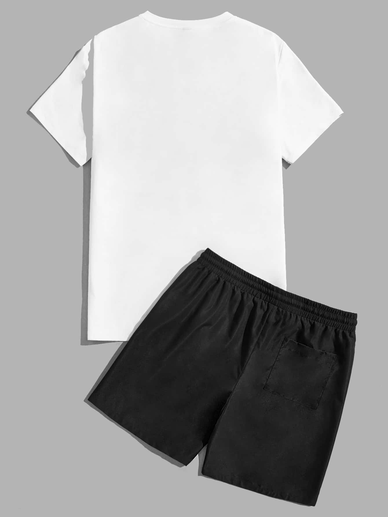 GENTILAND Guys Floral & Slogan Graphic Tee & Shorts