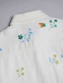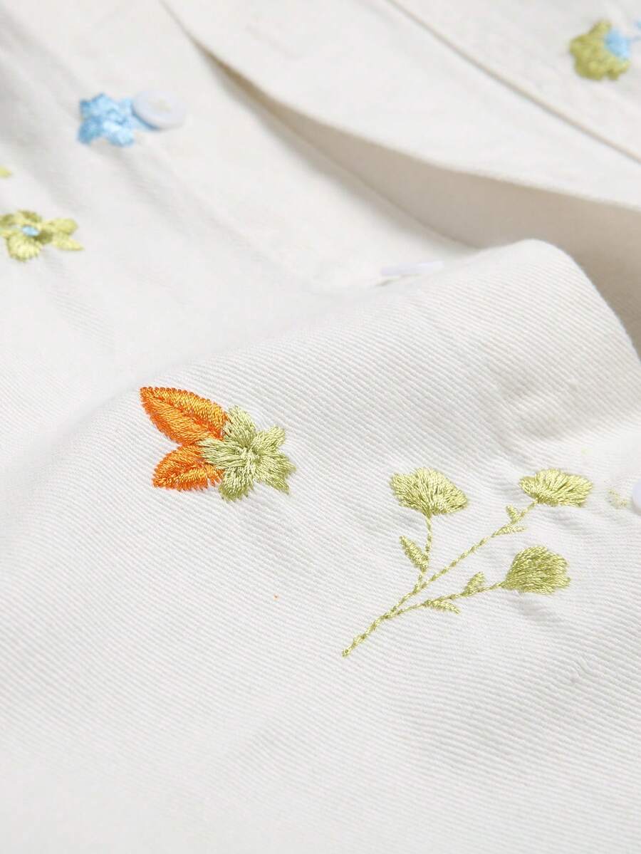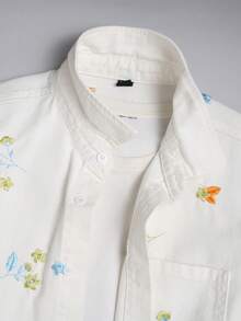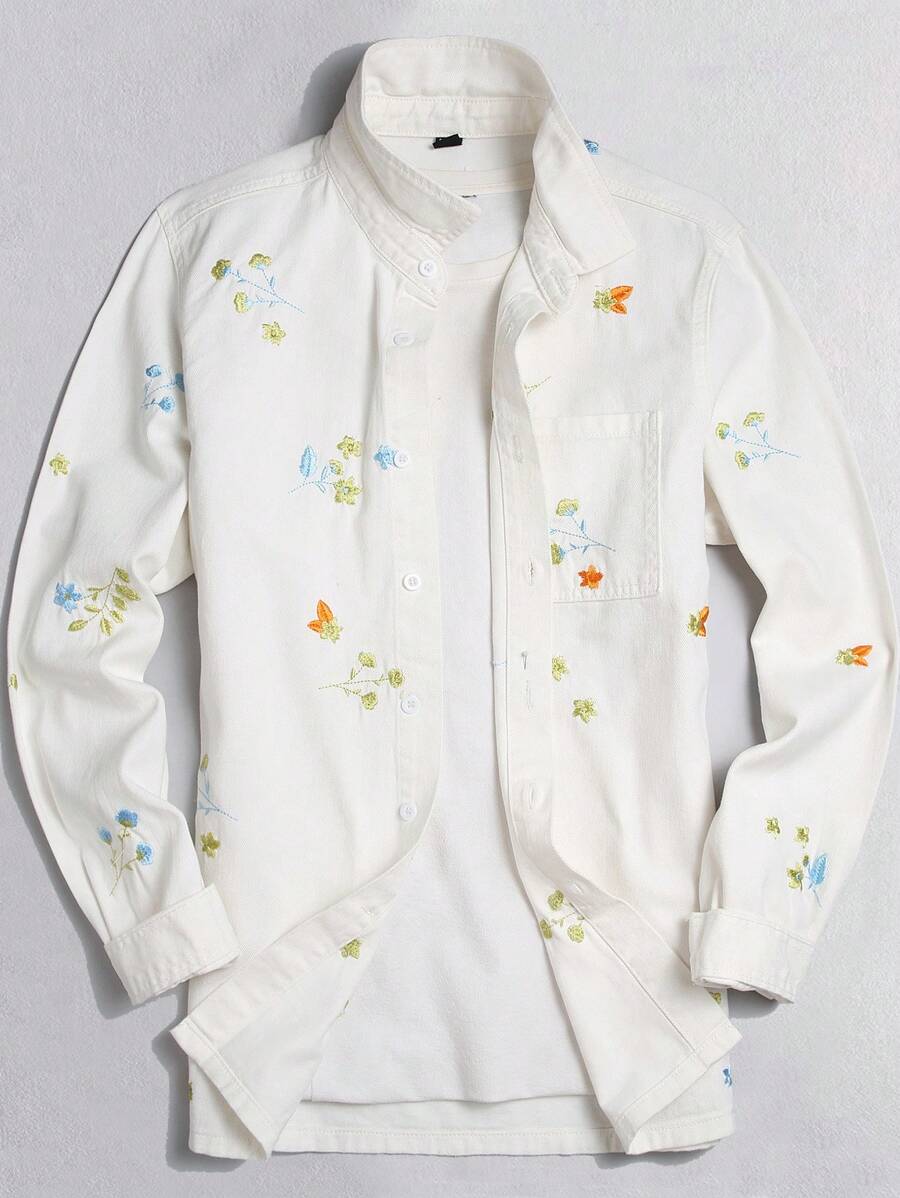 Guys Floral Embroidery Pocket Patched Denim Shirt Without Tee