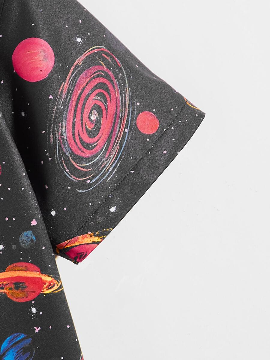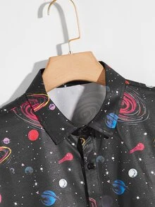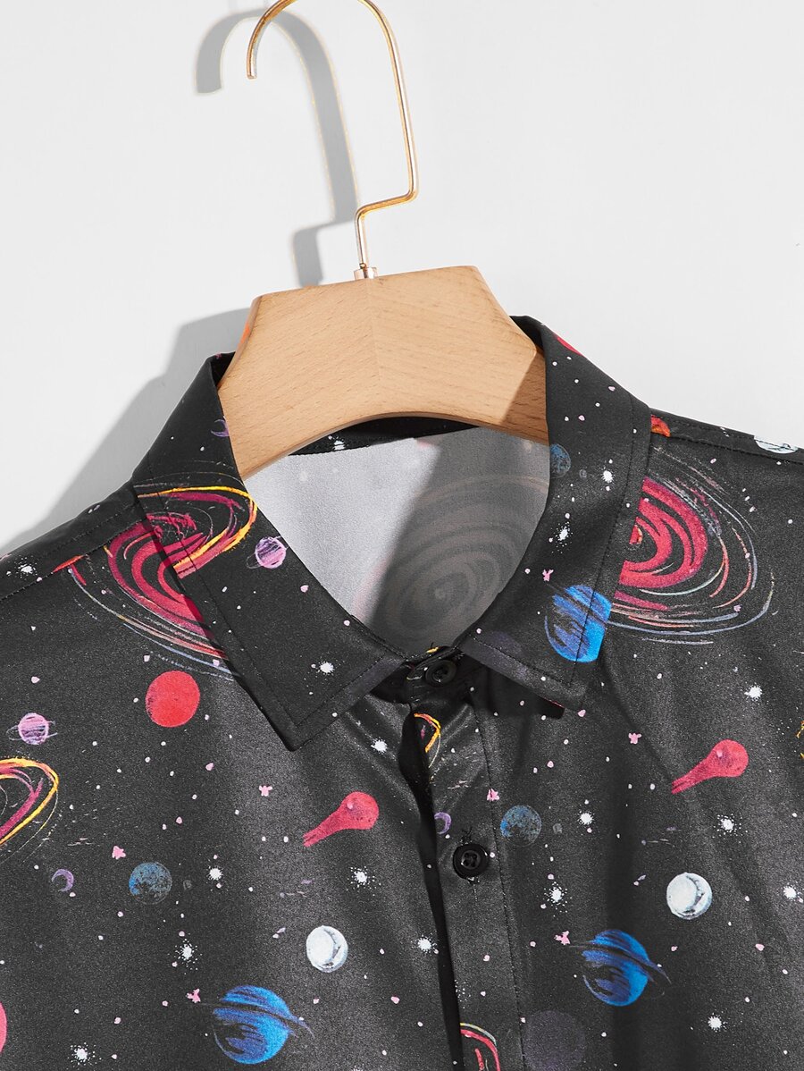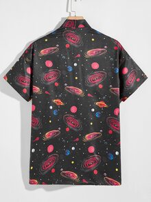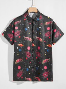Men Galaxy Print Button Up Shirt