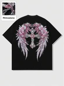 Men Goth Couple Matching Short Sleeve T-Shirt, Street Style Heavy Design Sakura Cross Print, Halloween