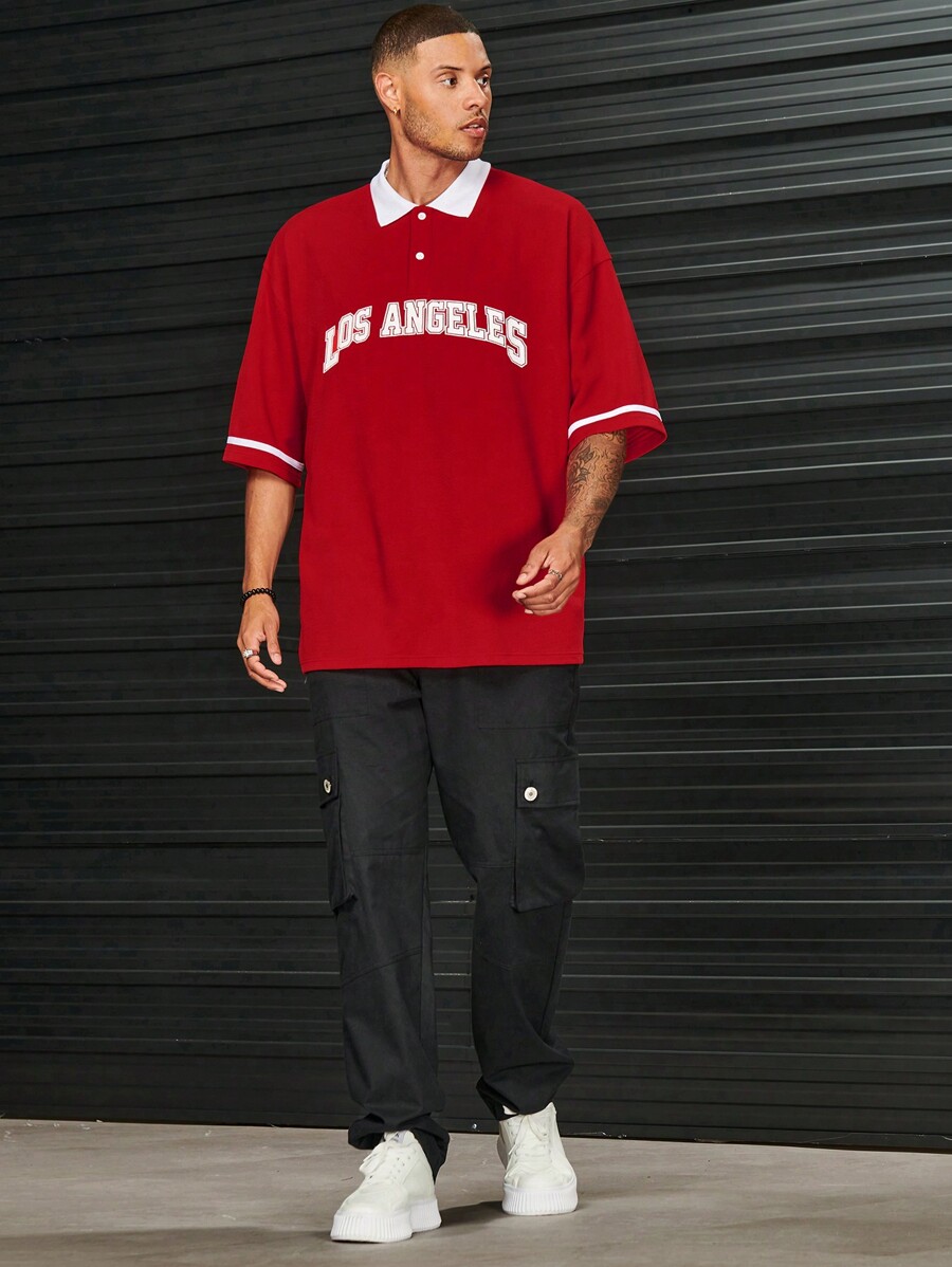 Guys Letter Graphic Contrast Collar Polo Shirt