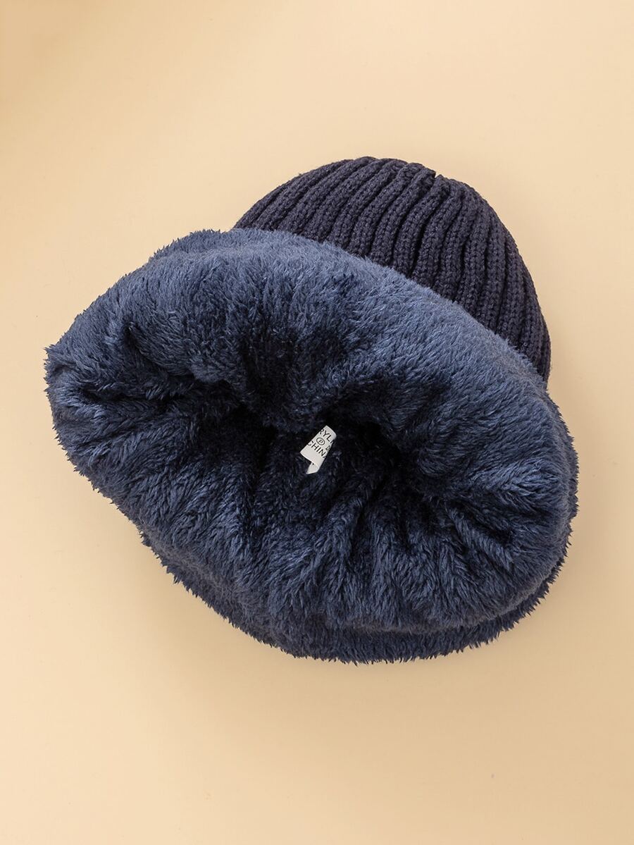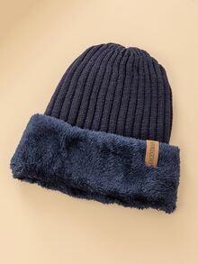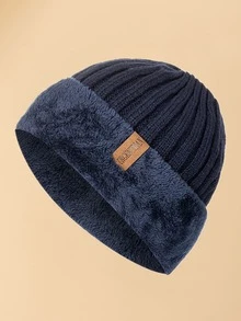 URGENTMAN Guys Letter Patch Decor Fleece Lined Beanie