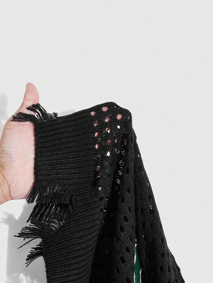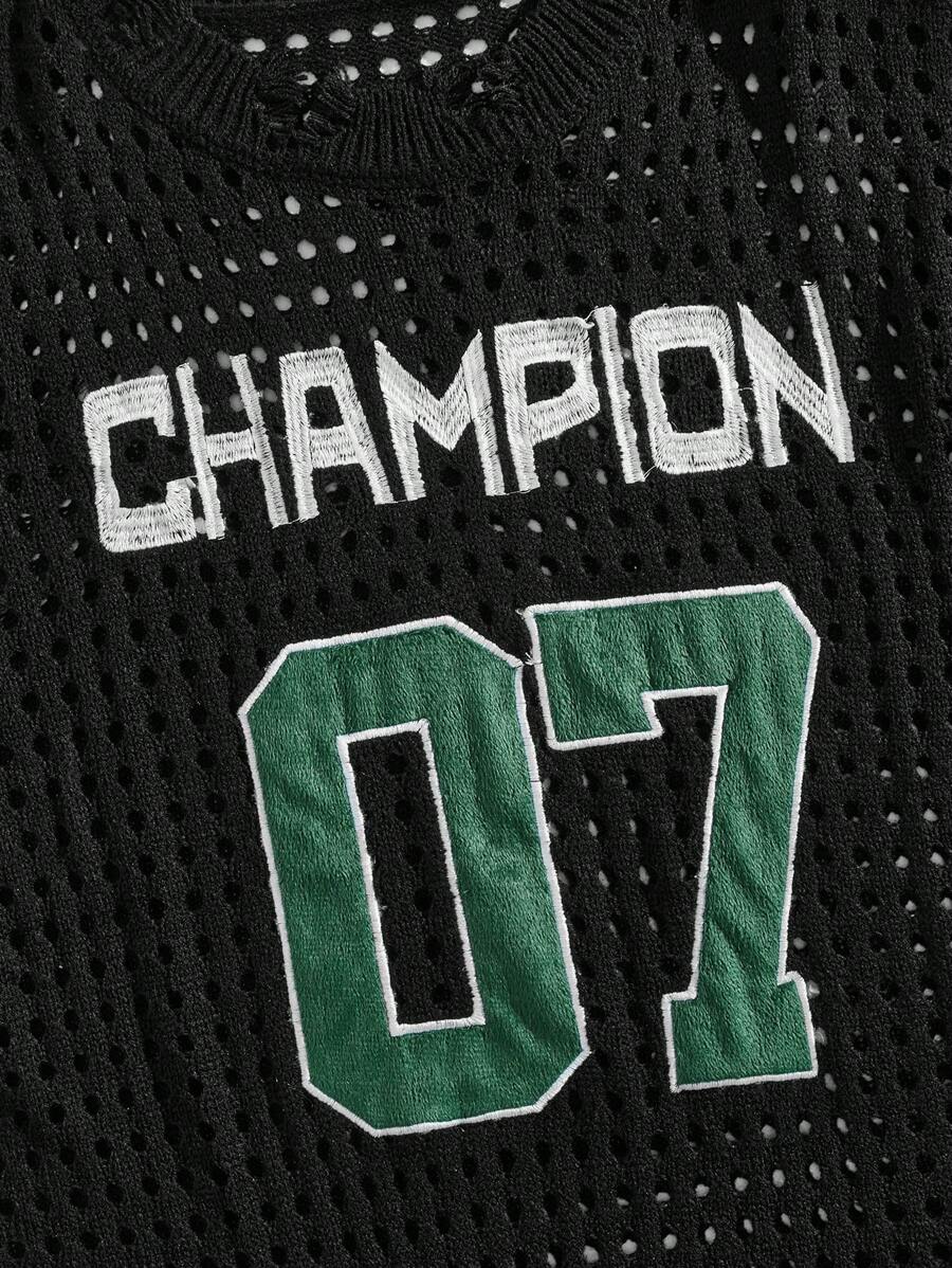 Men Perforated Distressed Knitted Short Sleeve Pullover Sweater, School, Football Style