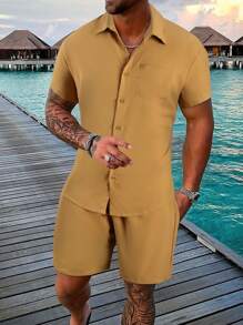 Guys Solid Pocket Patched Shirt & Shorts Without Tee