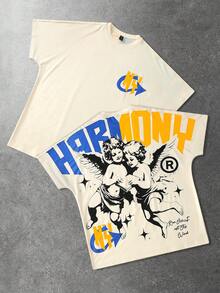 Men's Angel Letter Print Round Neck Short Sleeve Casual T-Shirt