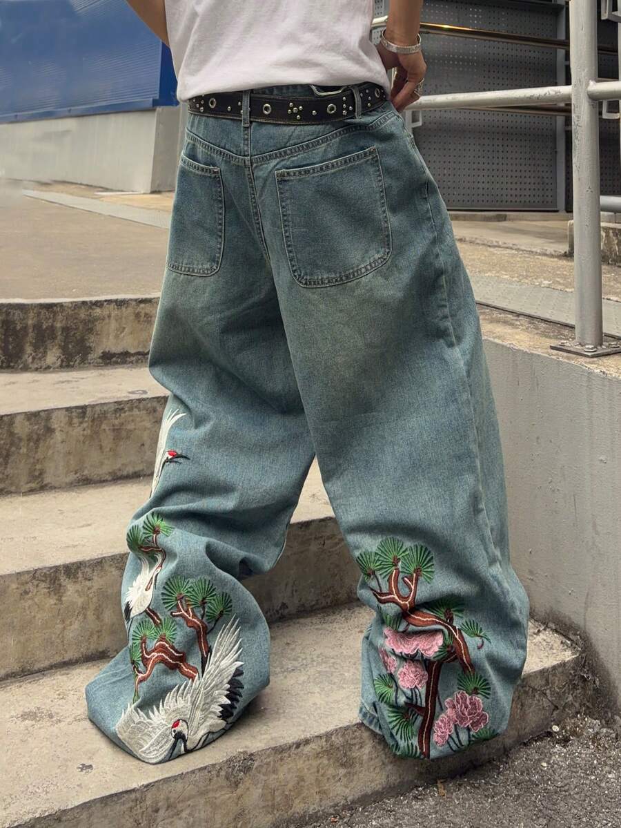 Men's Animal Embroidery Pattern Loose Wide-Leg Jeans Spring/Summer