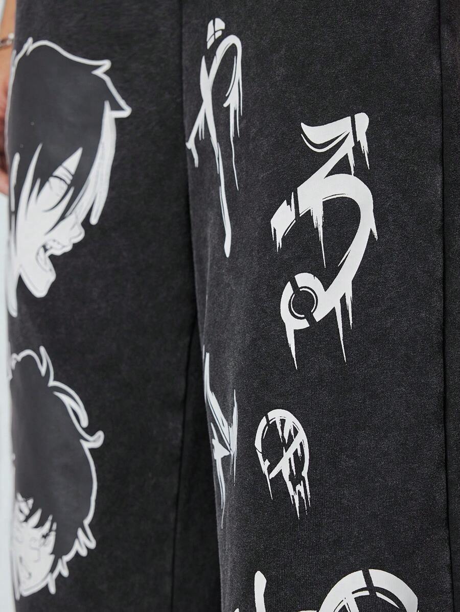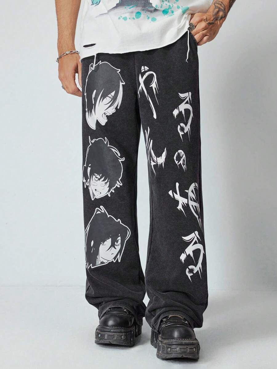 Men's Anime Cartoon Character Print Loose Fit Drawstring Waist Casual Sweatpants