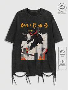 Men's Anime Crew Neck Short Sleeve Cat Print Casual Top, For Daily Wear