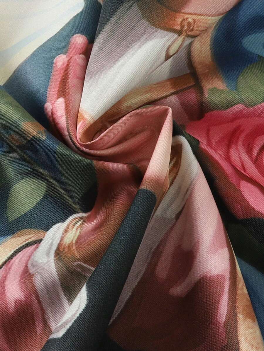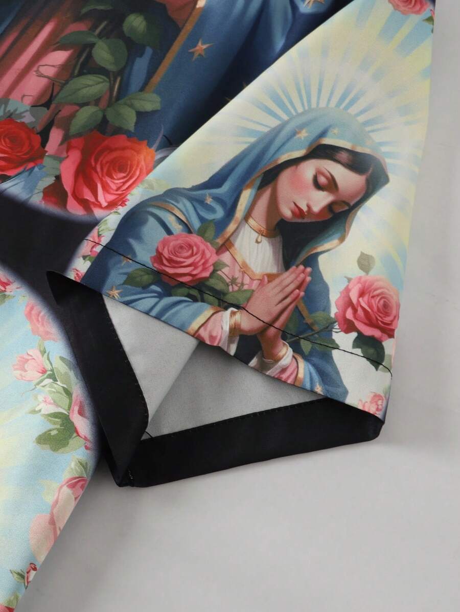 Street Life Men's Boxy Fit Religious Print Single-Breasted Loose Short Sleeve Shirt