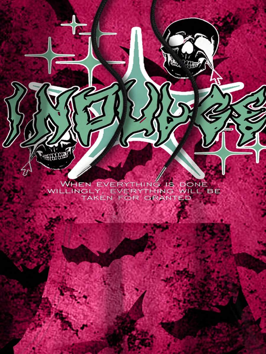 Men's Casual Color Block Bat Print Drawstring Hooded Fleece Sweatshirt, Autumn Winter, Halloween