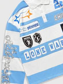 Men's Casual Striped Preppy Half-Placket Long Sleeve Polo Shirt