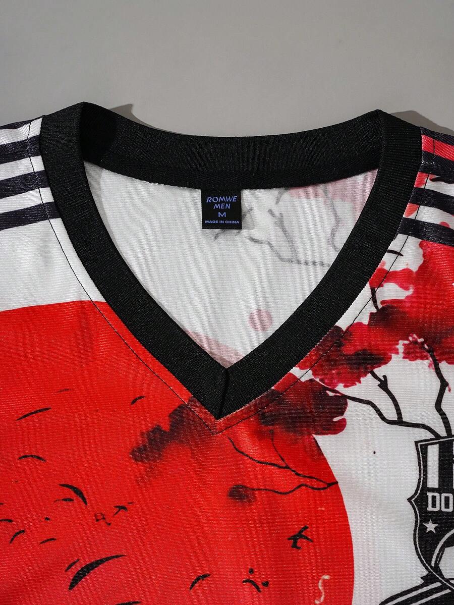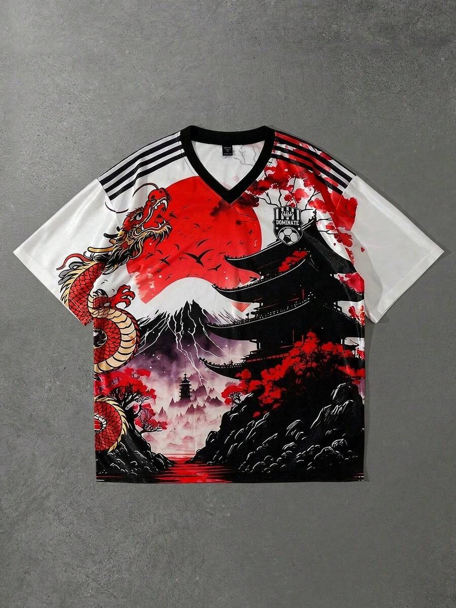Men's Chinese Dragon Print Varsity T-Shirt, Short Sleeve, Summer