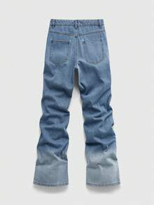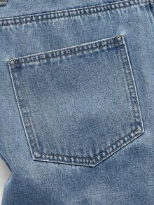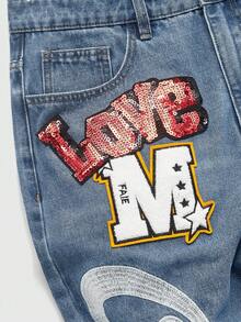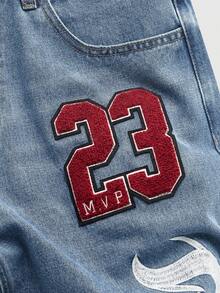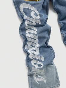 Men's Embroidered Patch Pocket Pleated Casual Denim Jeans