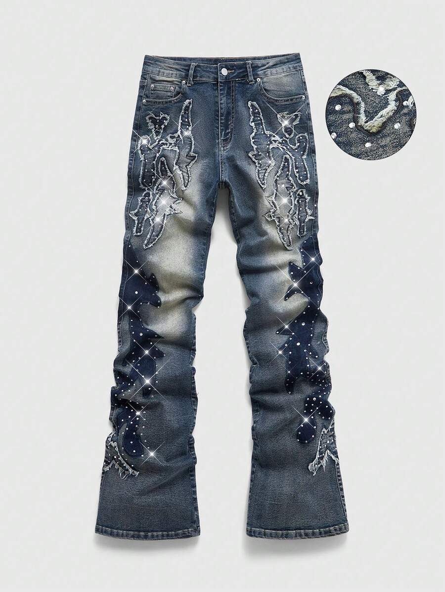 Men's Embroidered & Rhinestone Decorated Flared Jeans