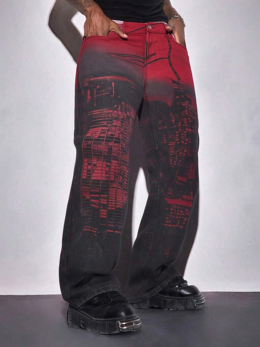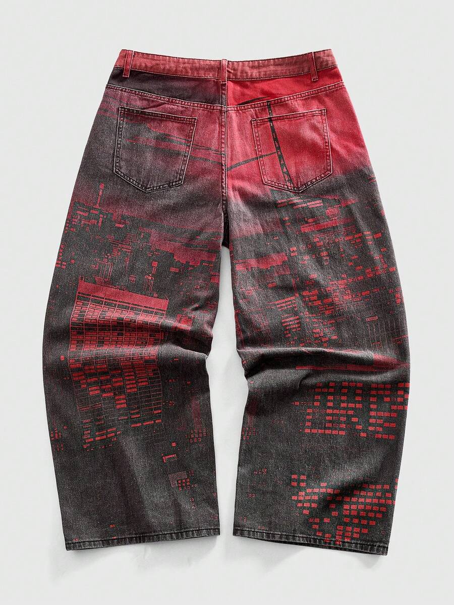 Men's Fashionable Printed Casual Denim Jeans
