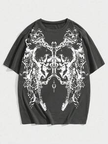 Men's Gothic Minimalist Graphic Print Round Neck Short Sleeve T-Shirt