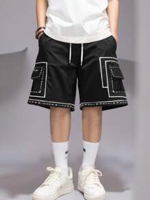 Men's Preppy Front Tie Detail Pocket Plain Casual Shorts, Everyday Wear