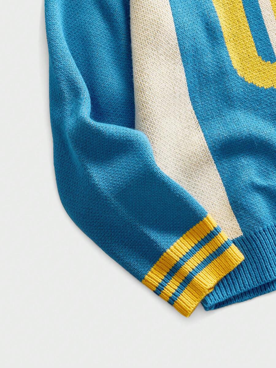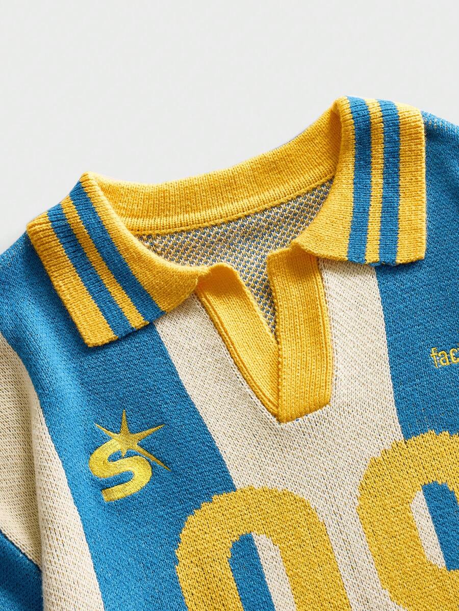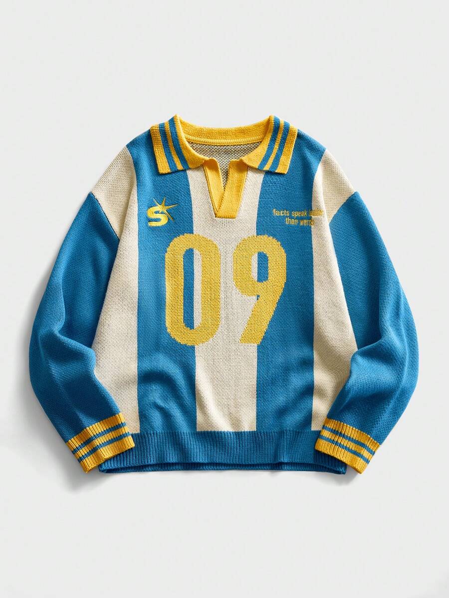 Men's Preppy Polo Collar Knitted Jacquard Sweater