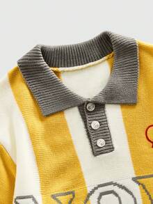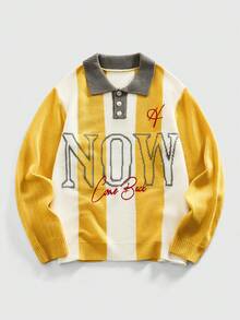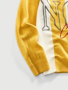 Men's Preppy Round Neck Embroidered Football Sporty Knit Sweater, Retro Streetwear