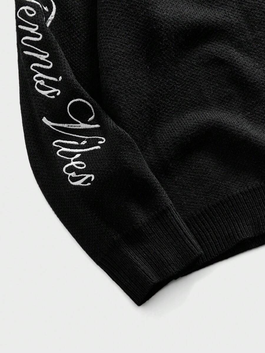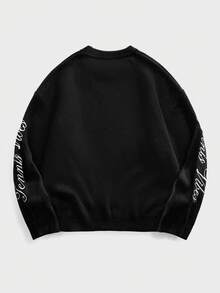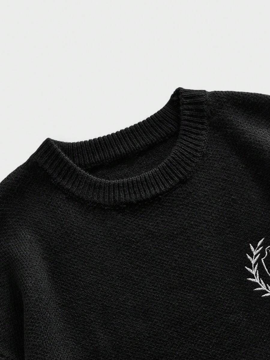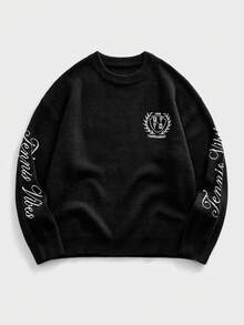 Men's Round Neck Embroidered Knit Sweater, Street Style