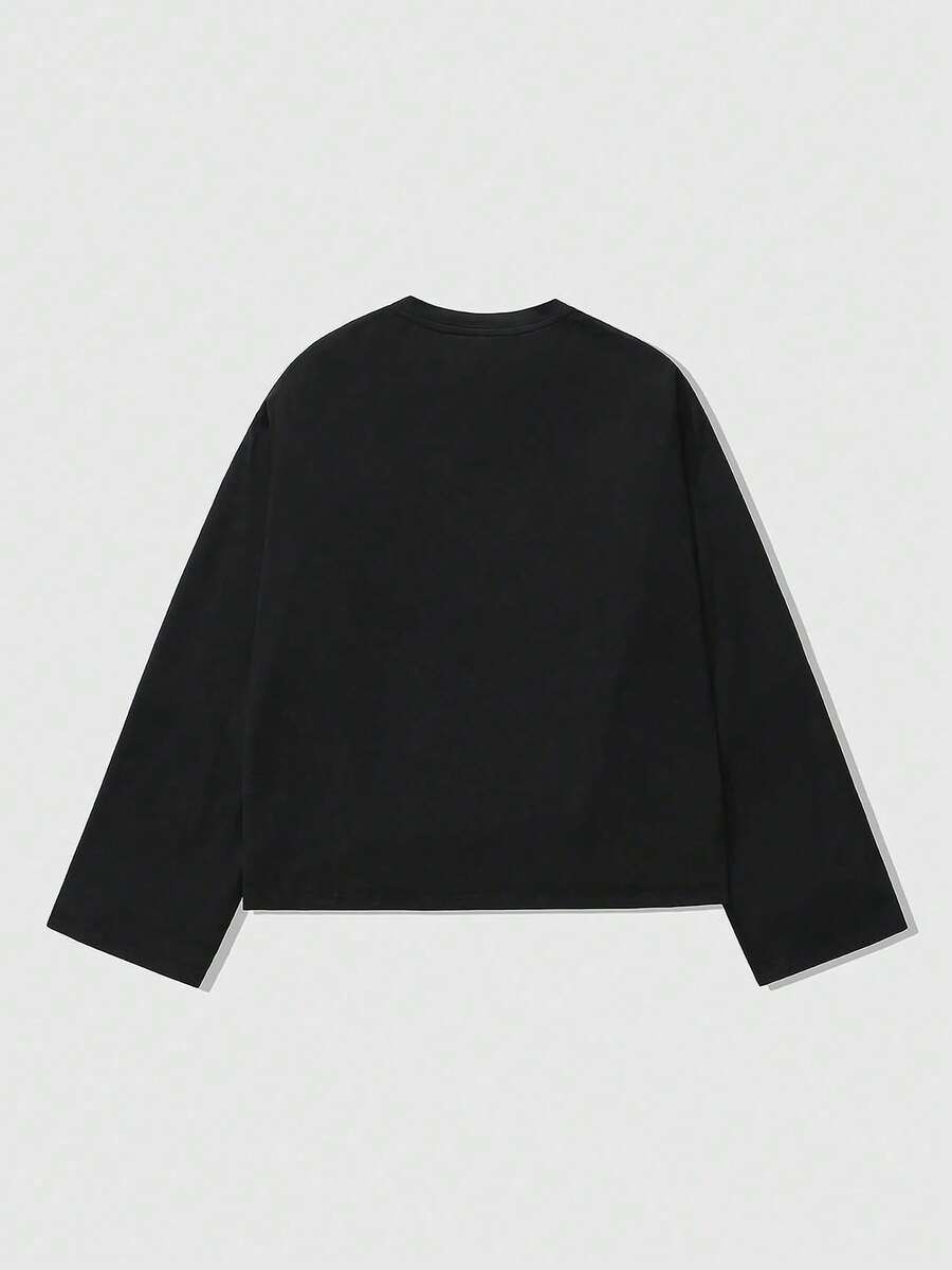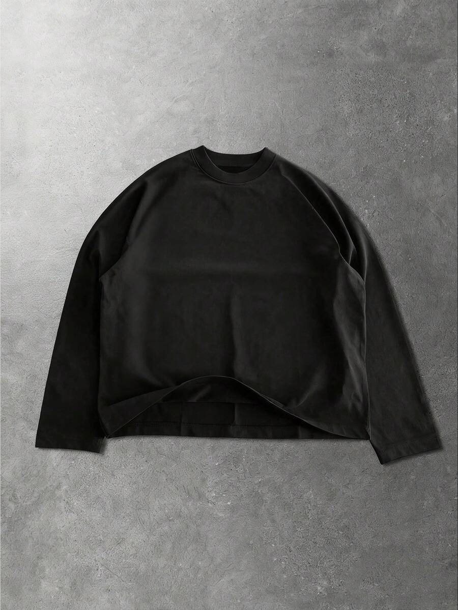 Men's Solid Color Round Neck Long Sleeve Casual Loose Fit T-Shirt