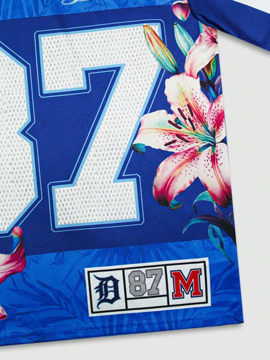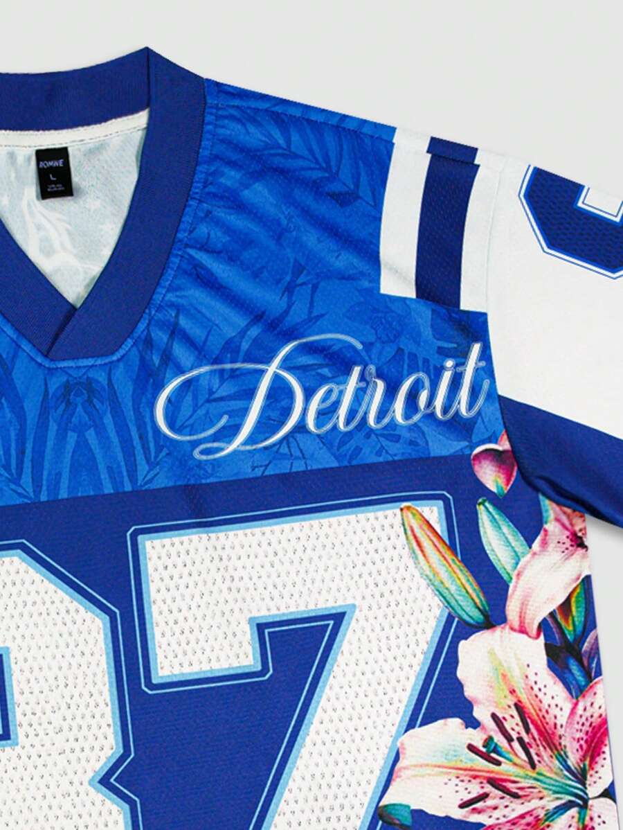 Men's Street Life Casual Numeric & Floral Print V-Neck Short Sleeve T-Shirt