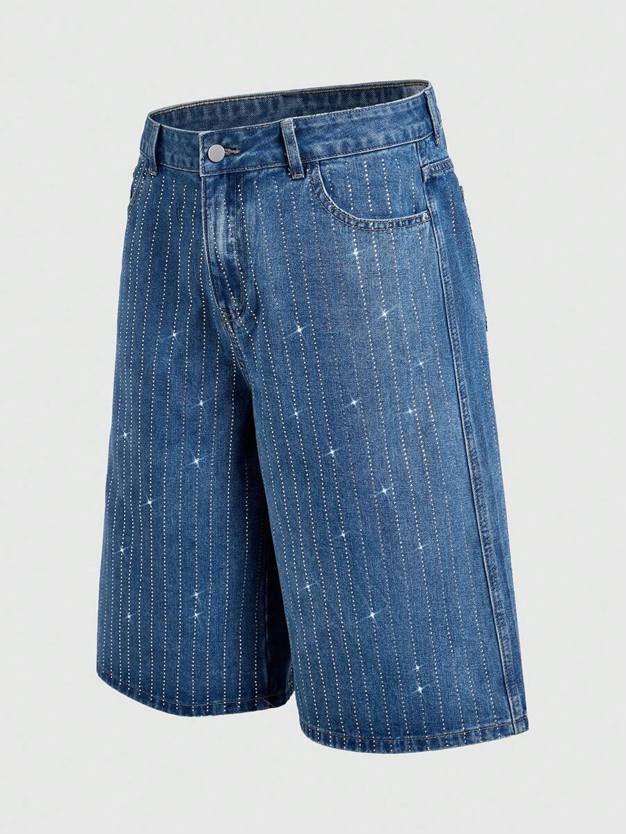 Men's Street Life Diamond Embellished Denim Bermuda Shorts
