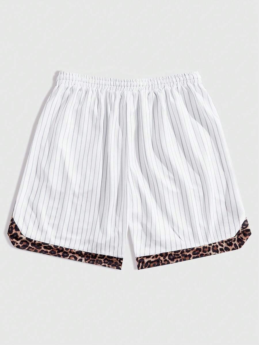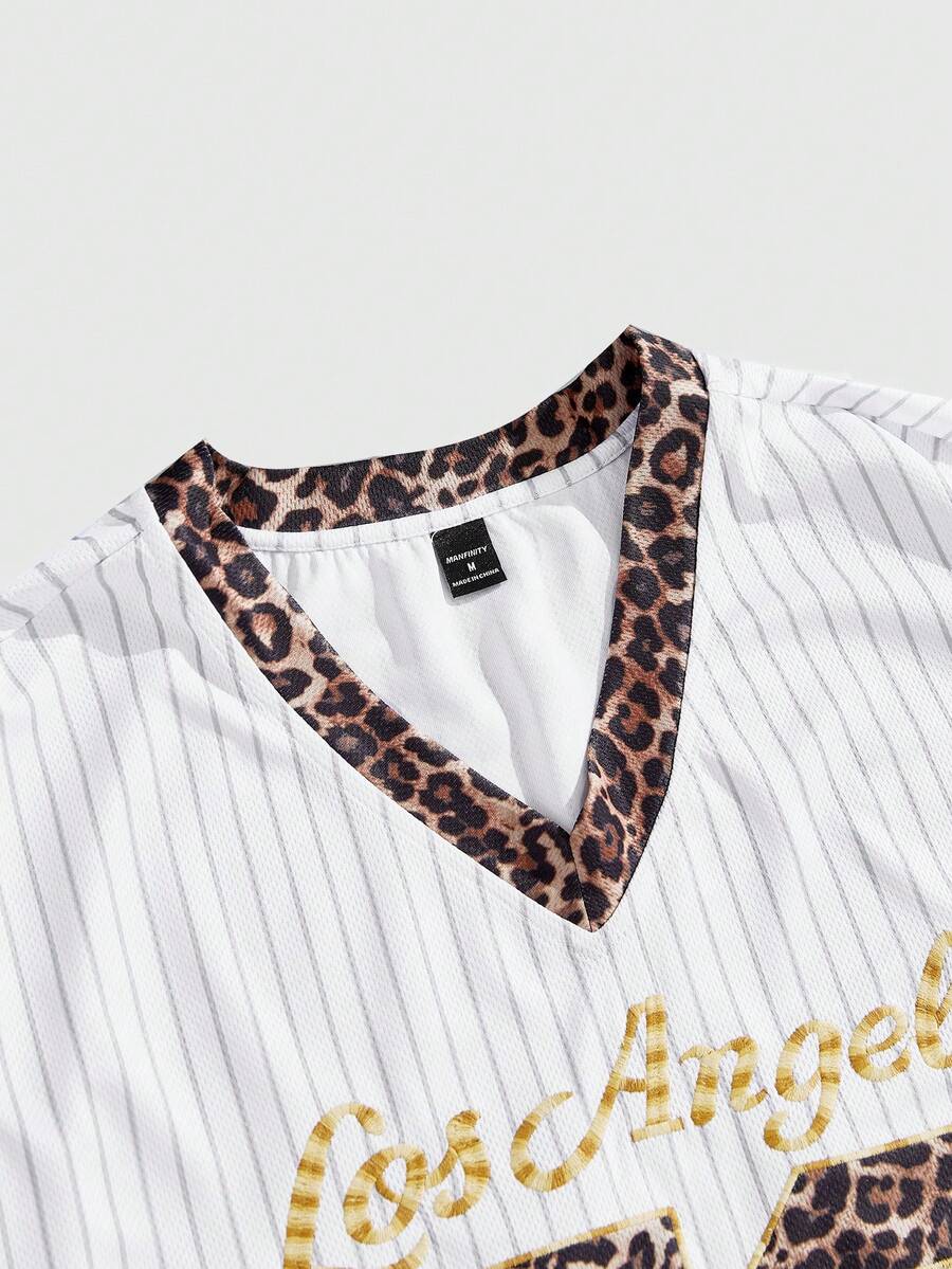 Prep Men's Summer Leopard Print Patchwork Baseball Tee And Casual Shorts Set