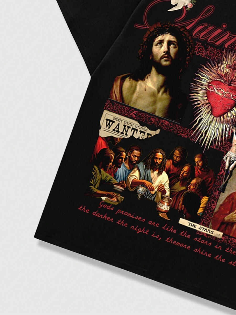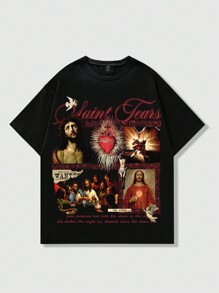 Men's Vintage Gothic Print Short Sleeve T-Shirt, Suitable For Daily Wear In Spring/Summer