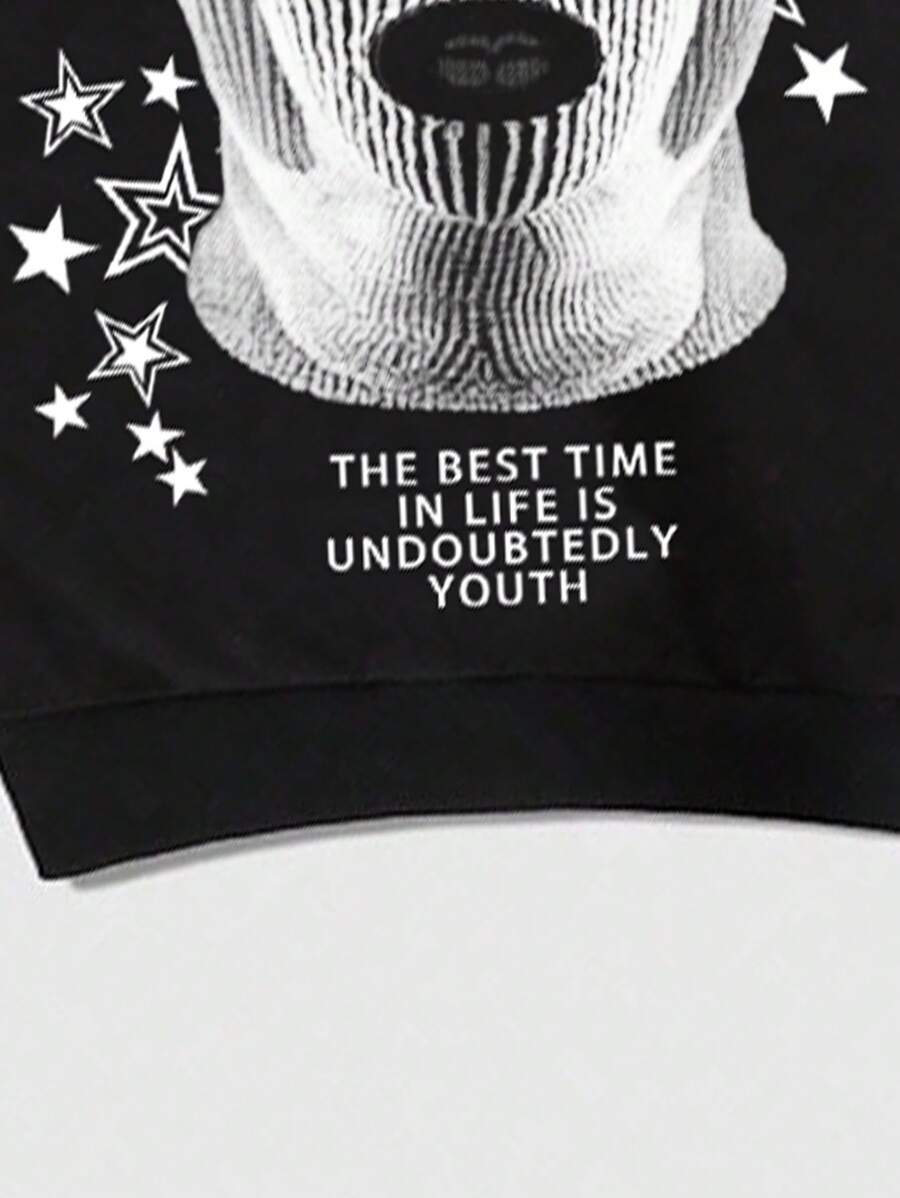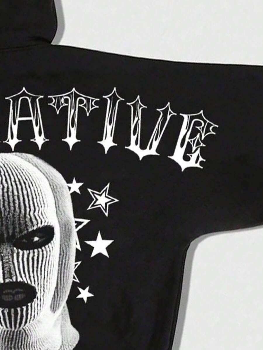 Men's Zip-Up Long Sleeve Hoodie With Letter & Figure Print