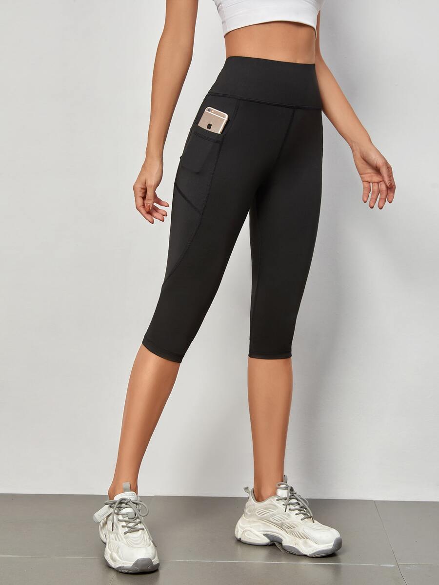 Mid-Calf Length Yoga Leggings Tummy Control Sports Leggings With Phone Pocket