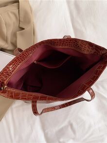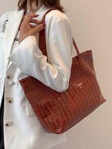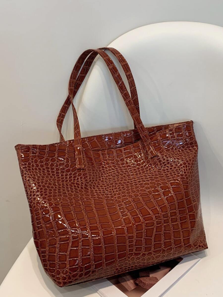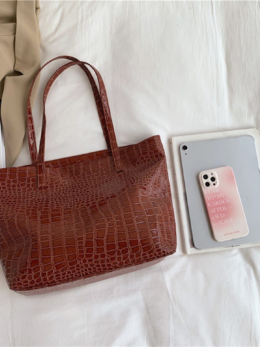 Minimalist Crocodile Embossed Shoulder Tote Bag