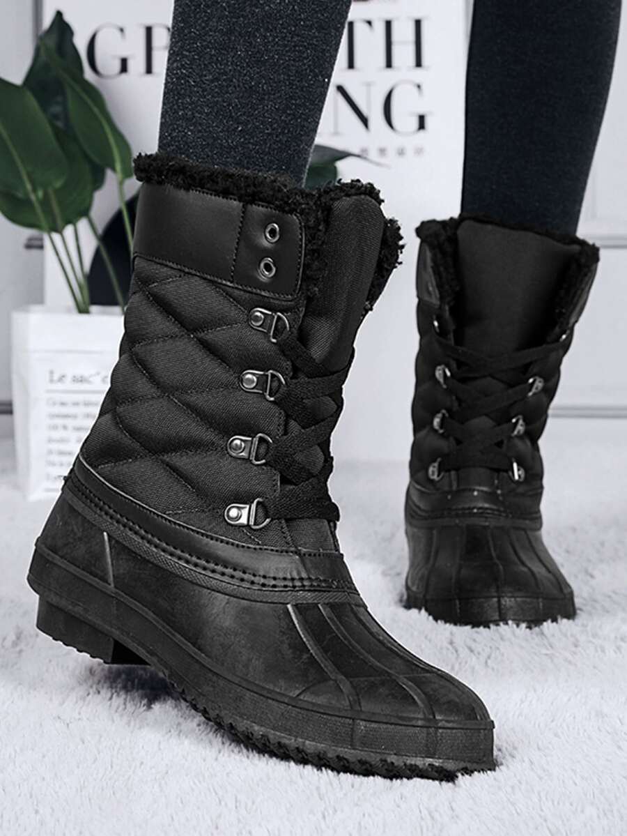 Minimalist Lace-up Front Fuzzy Duck Boots