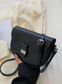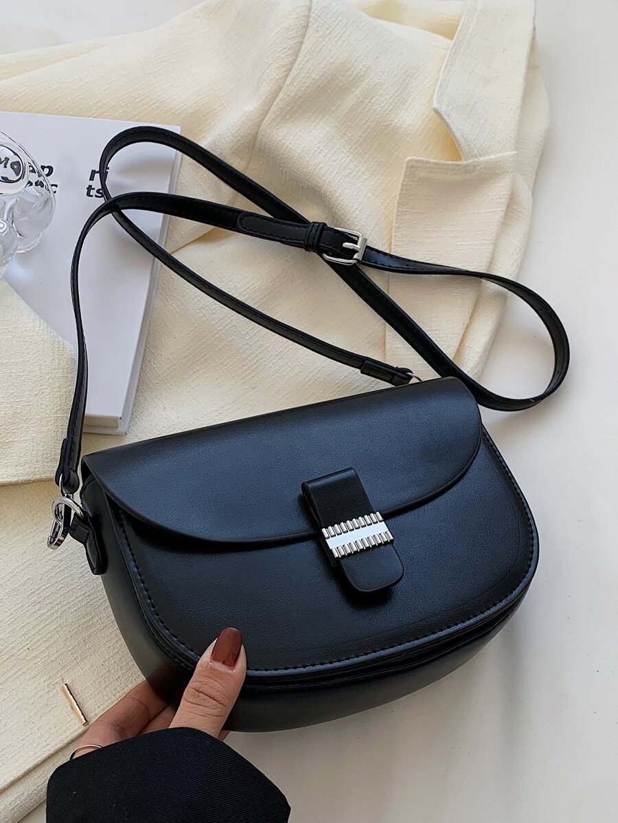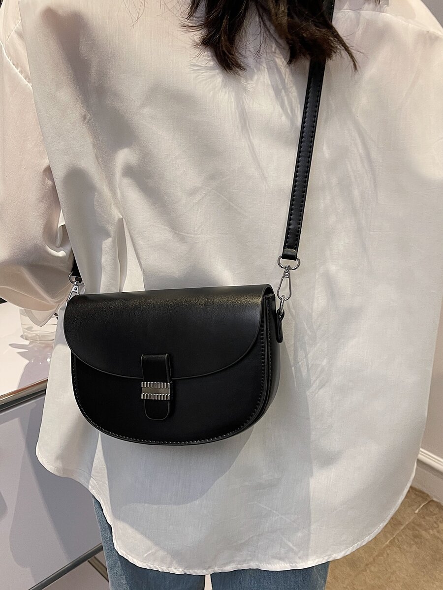 Minimalist Saddle Bag Black Flap Crossbody Bag For Women