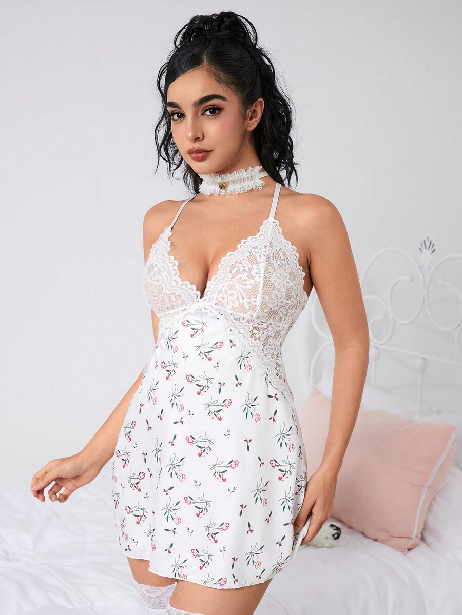 Minimalist Sexy Fresh Floral Silk Satin & Lace Patchwork Sexy Dress