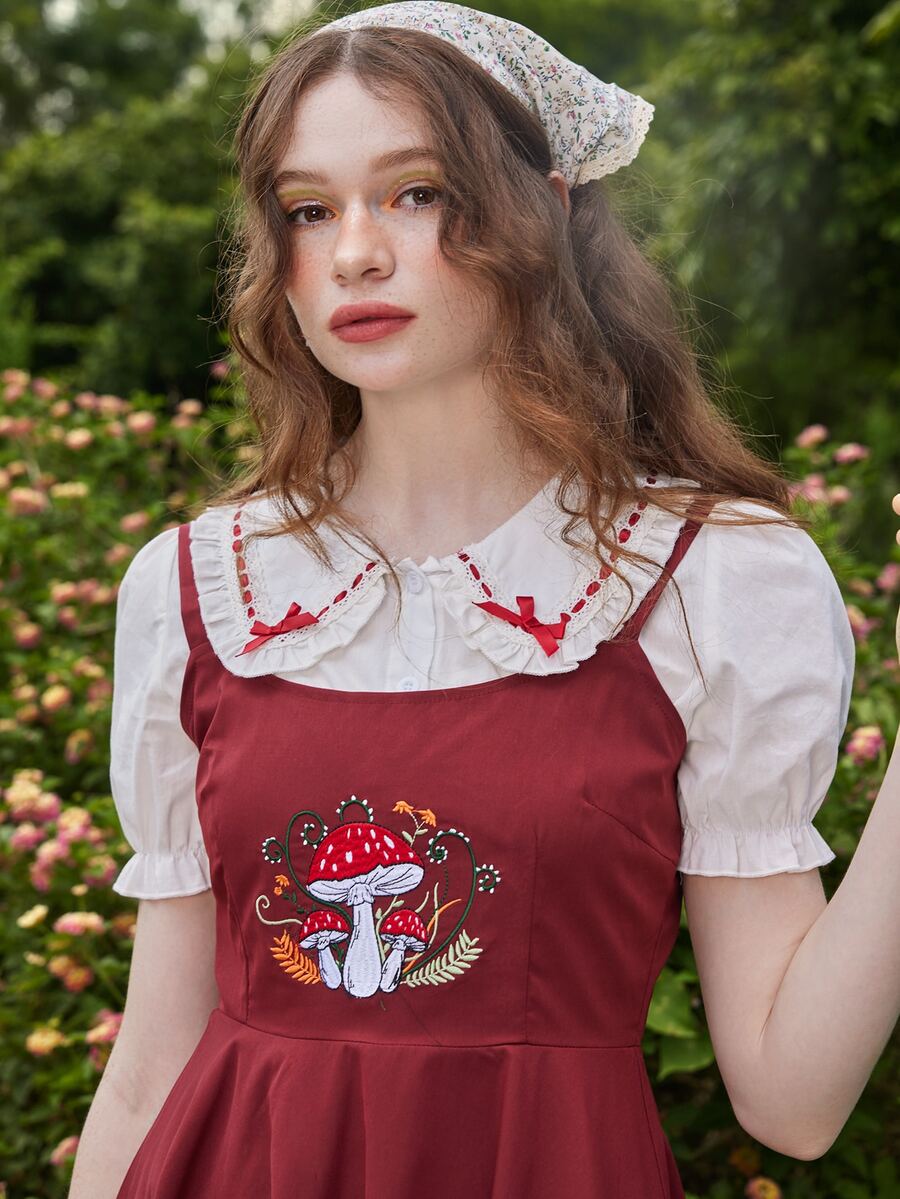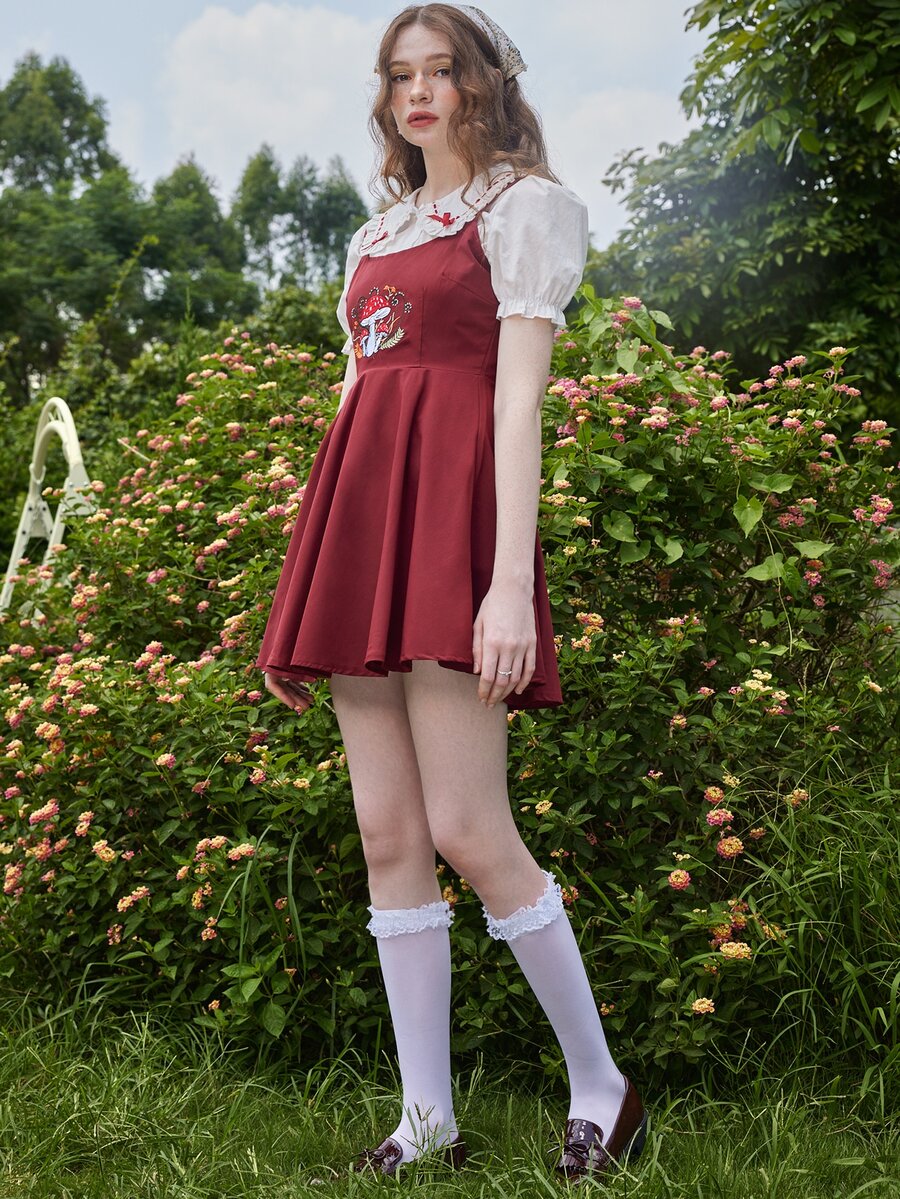 Fairycore Mushroom Embroidery Cami Dress Without Blouse