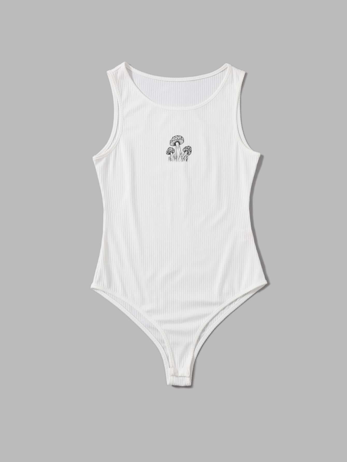 Mushroom Graphic Ribbed Bodysuit