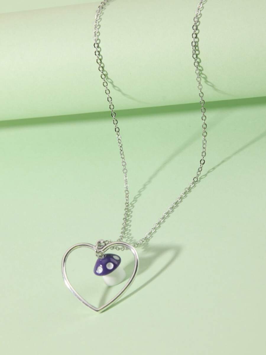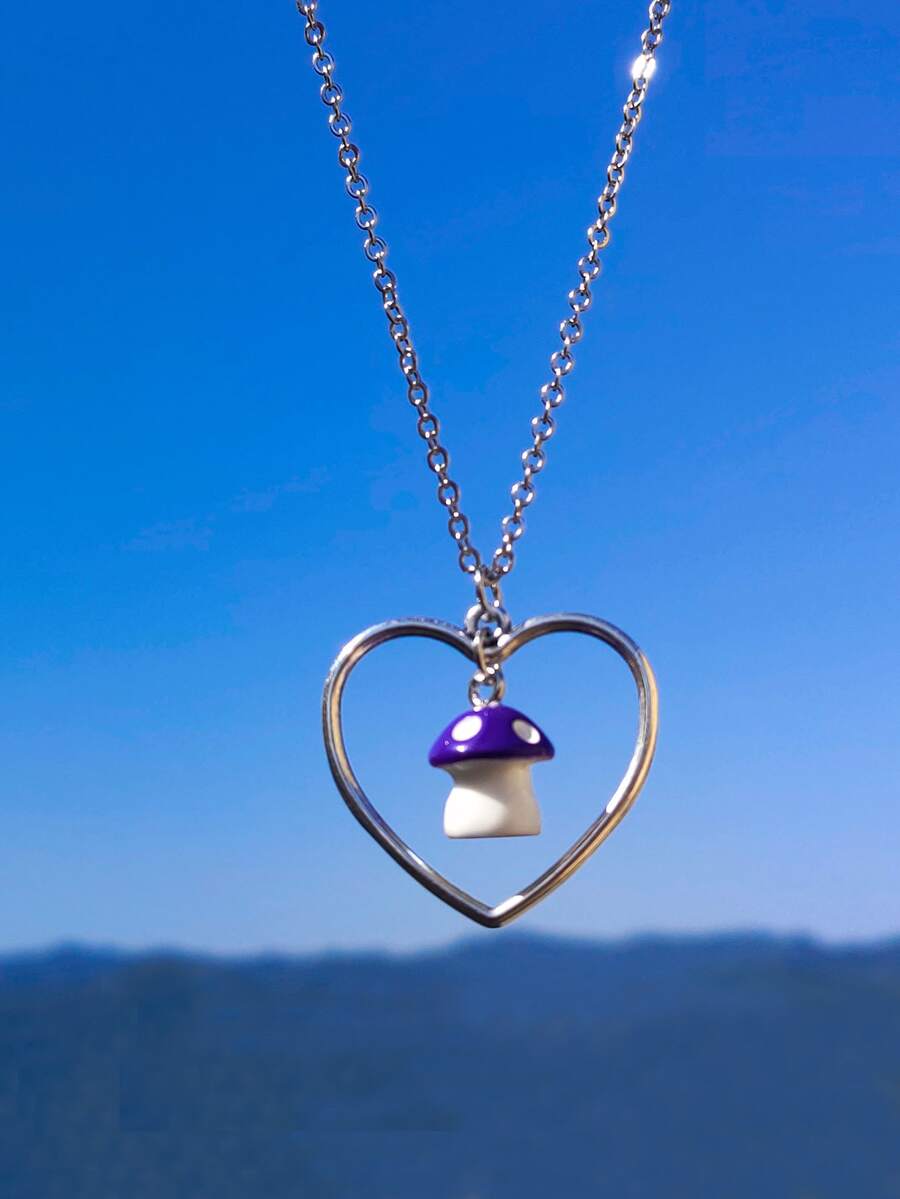 Mushroom & Heart Charm Necklace