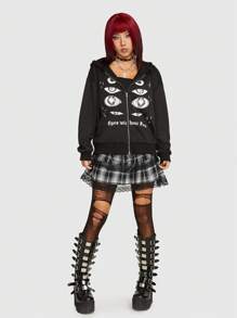 Mystic heart Slogan Graphic Zip Up Drawstring Hoodie