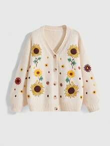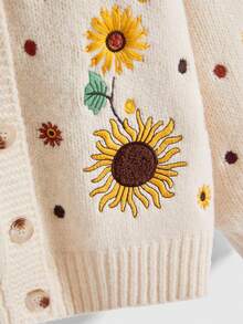 Fairycore Nature-Inspired Sunflower Embroidered V-Neck Knit Cardigan