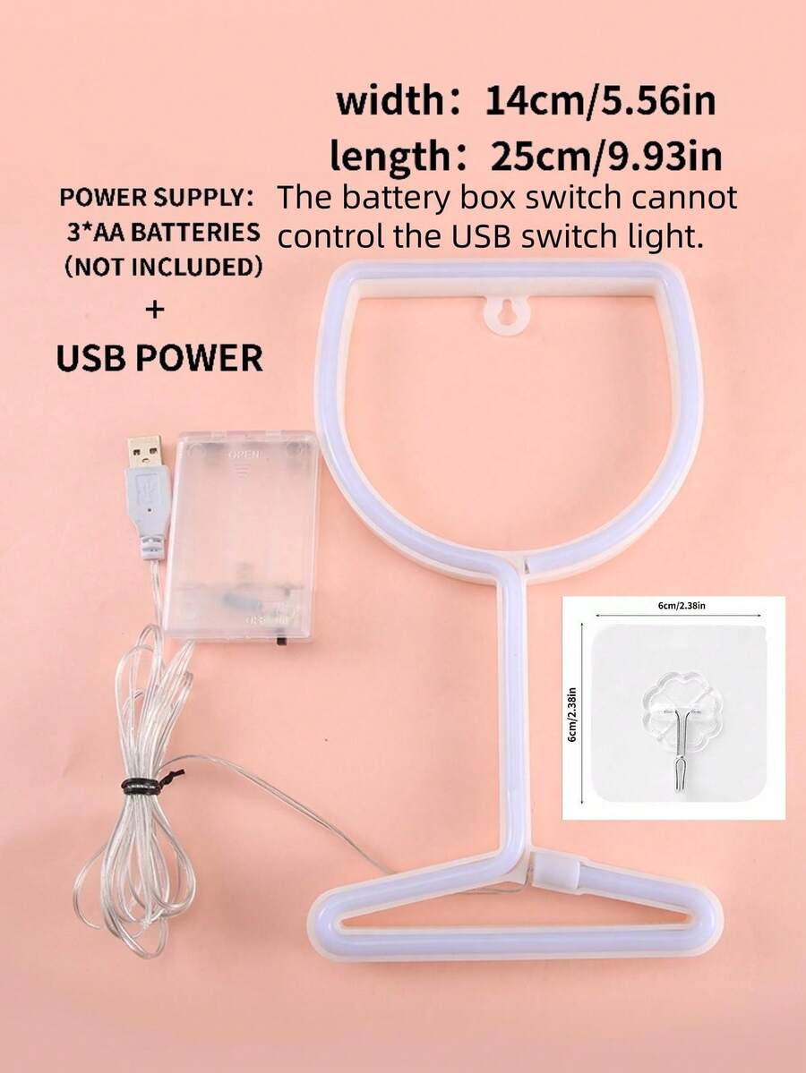 Neon Light Wine Glass Shape Battery Box USB Dual Use, Suitable For Room Decor, Party Decoration, Outdoor Decor (Non-Waterproof), Wall Decor, Home Decor, Room LED Neon Light