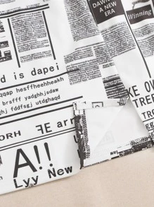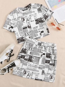 Newspaper Print Crop Top & Slit Hem Skirt Set